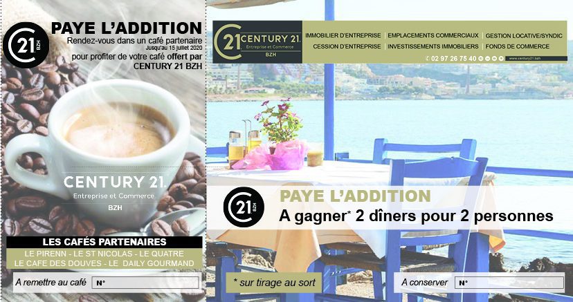 Notre agence Century 21 Bzh Entreprise et Commerce va avoir le plaisir ces prochains jours de passer voir tous nos commerçants du Centre-ville de vannes pour leur payer un café ☕️? On vous dit à très vite ?☕️ Mais pas que... nous leur permettons aussi de gagner 2 dîner pour 2 personnes à l'issue d'un tirage au sort....