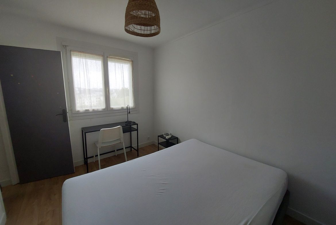 Située dans un quartier résidentiel, BZH Groupe Immobilier vous propose de visiter cette chambre meublée, située au 4ème étage d’une résidence sécurisée, dans un appartement de type F5, disposant de quatre chambres pour 4 locataires.