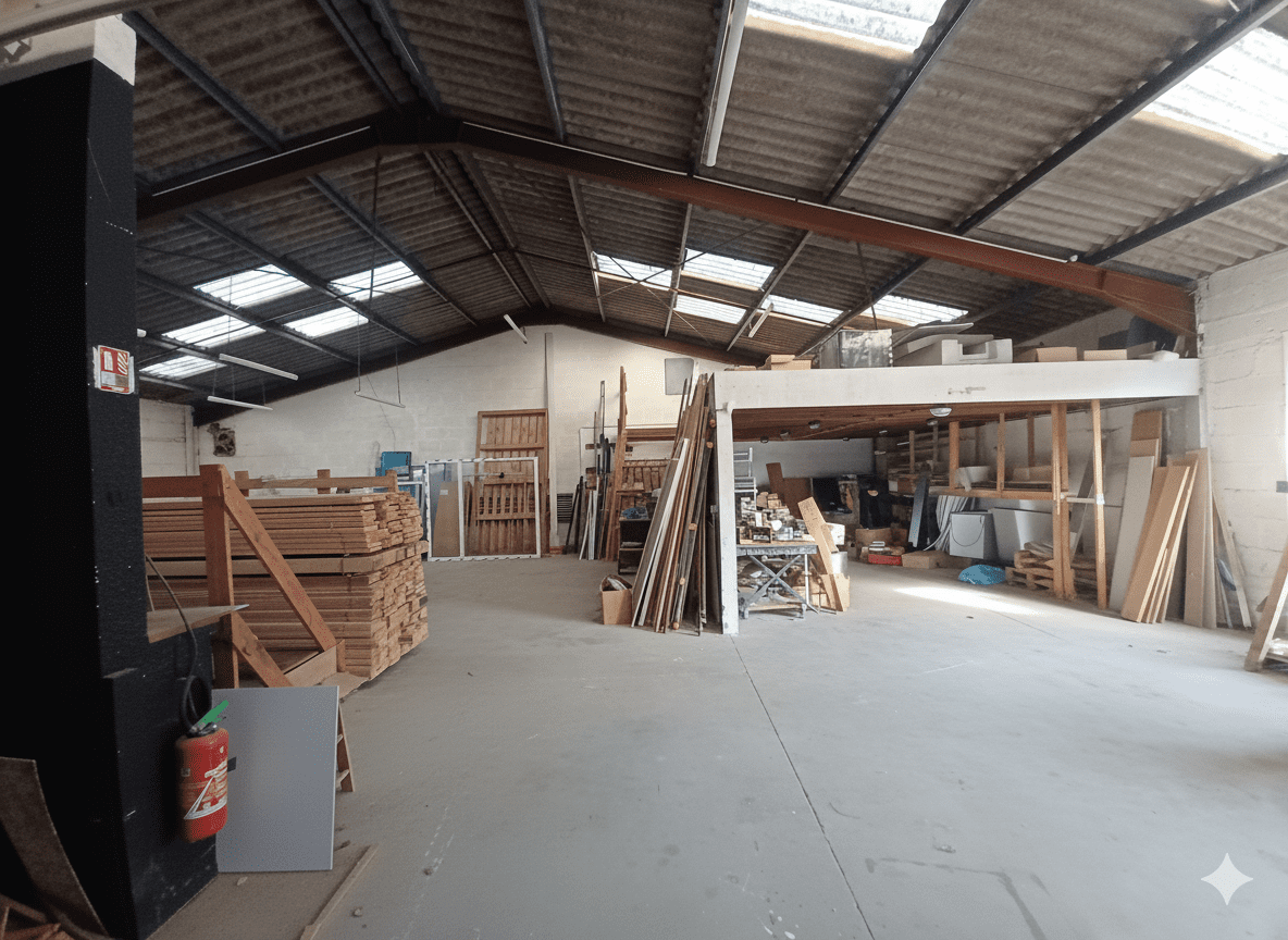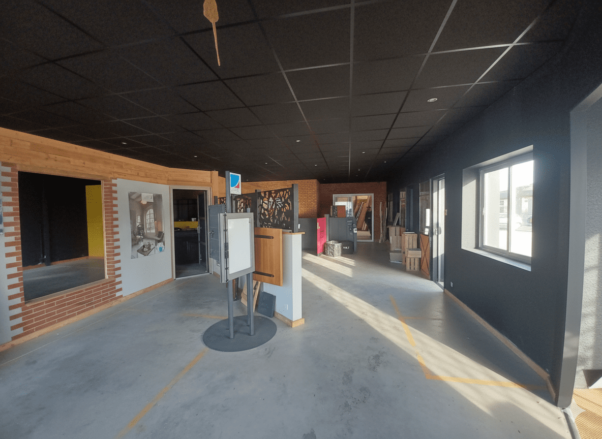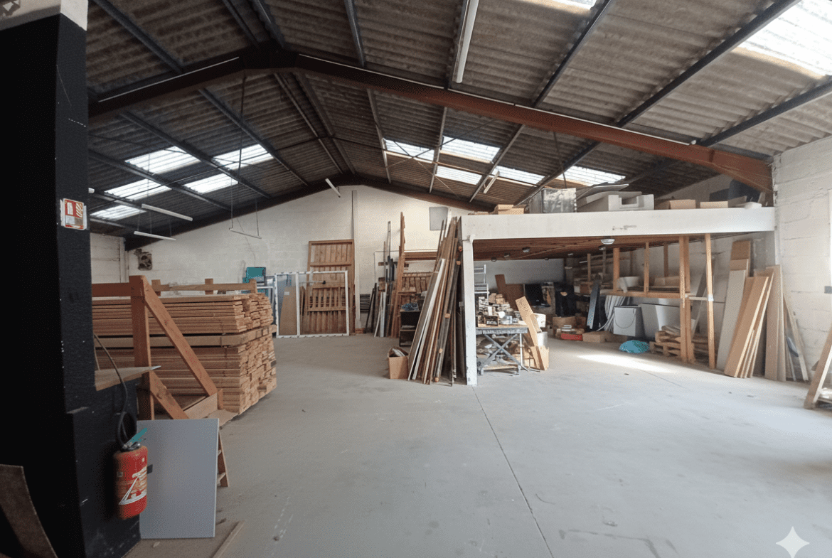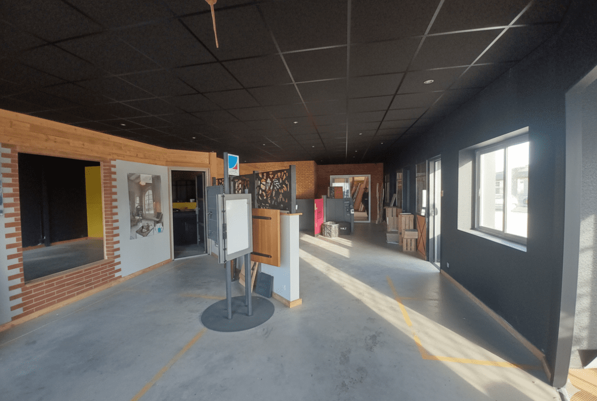 Le local se compose d’un espace de vente d’environ 150 m², de trois bureaux représentant environ 55 m², d’une salle de pose avec cuisine, d’un sanitaire avec lave-mains, ainsi que d’un espace de stockage d’environ 180 m² disposant d’une porte coulissante facilitant les flux logistiques. Une mezzanine d’environ 30 m² complète l’ensemble, intégrant un sanitaire et une douche, offrant un confort supplémentaire pour l’exploitation quotidienne.
