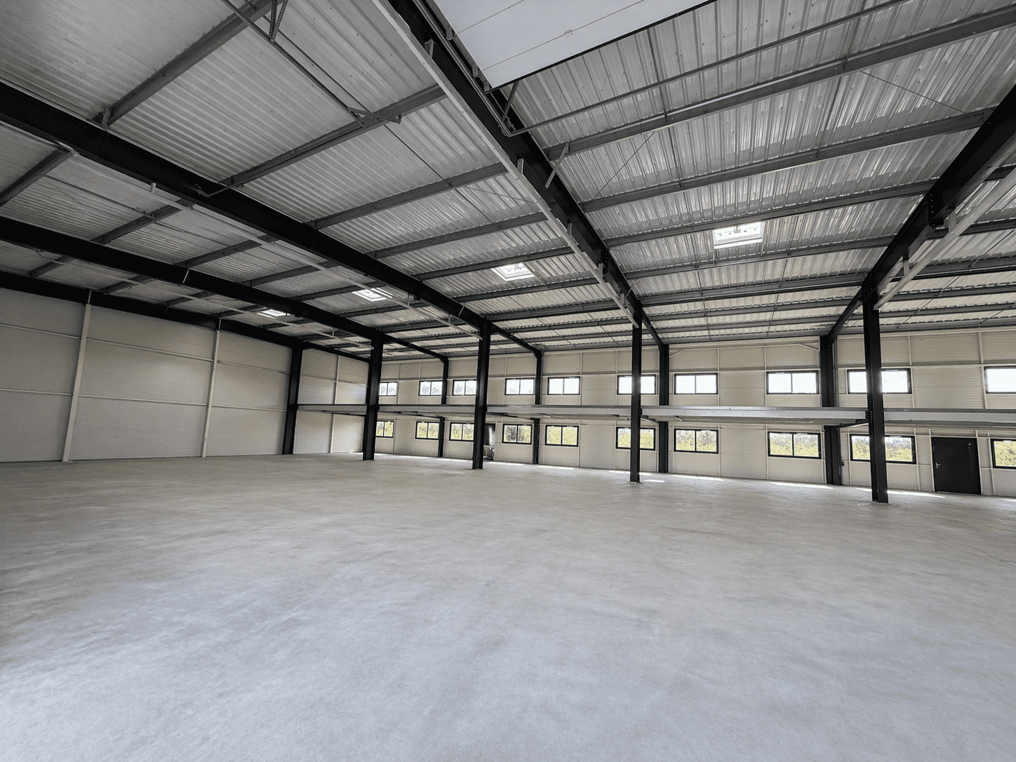 Le local se compose d’un espace de stockage d’environ 450 m², équipé de trois portes sectionnelles motorisées facilitant les flux logistiques ainsi que de trois portes de service pour les accès piétons. Une mezzanine en structure métallique d’environ 120 m² complète l’ensemble, offrant la possibilité d’aménager des bureaux ou d’augmenter la surface de stockage.