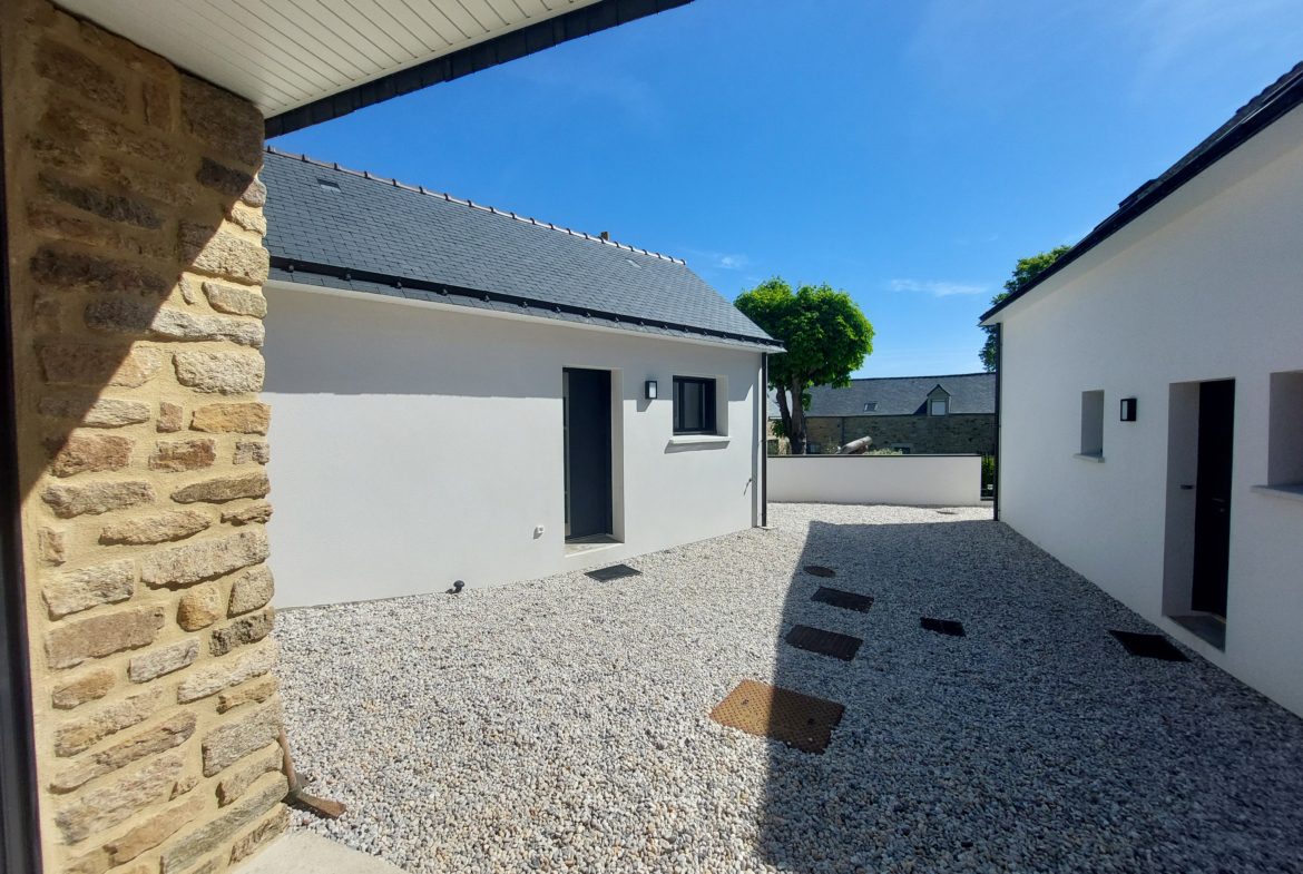 Située dans un petit hameau tranquille au charme typique breton, BZH Groupe Immobilier vous propose de visiter cette maison neuve, lumineuse, à étage, aux prestations modernes, pour une famille recherchant le calme et la nature, avec une dépendance, une grange, un jardin et place de stationnement.