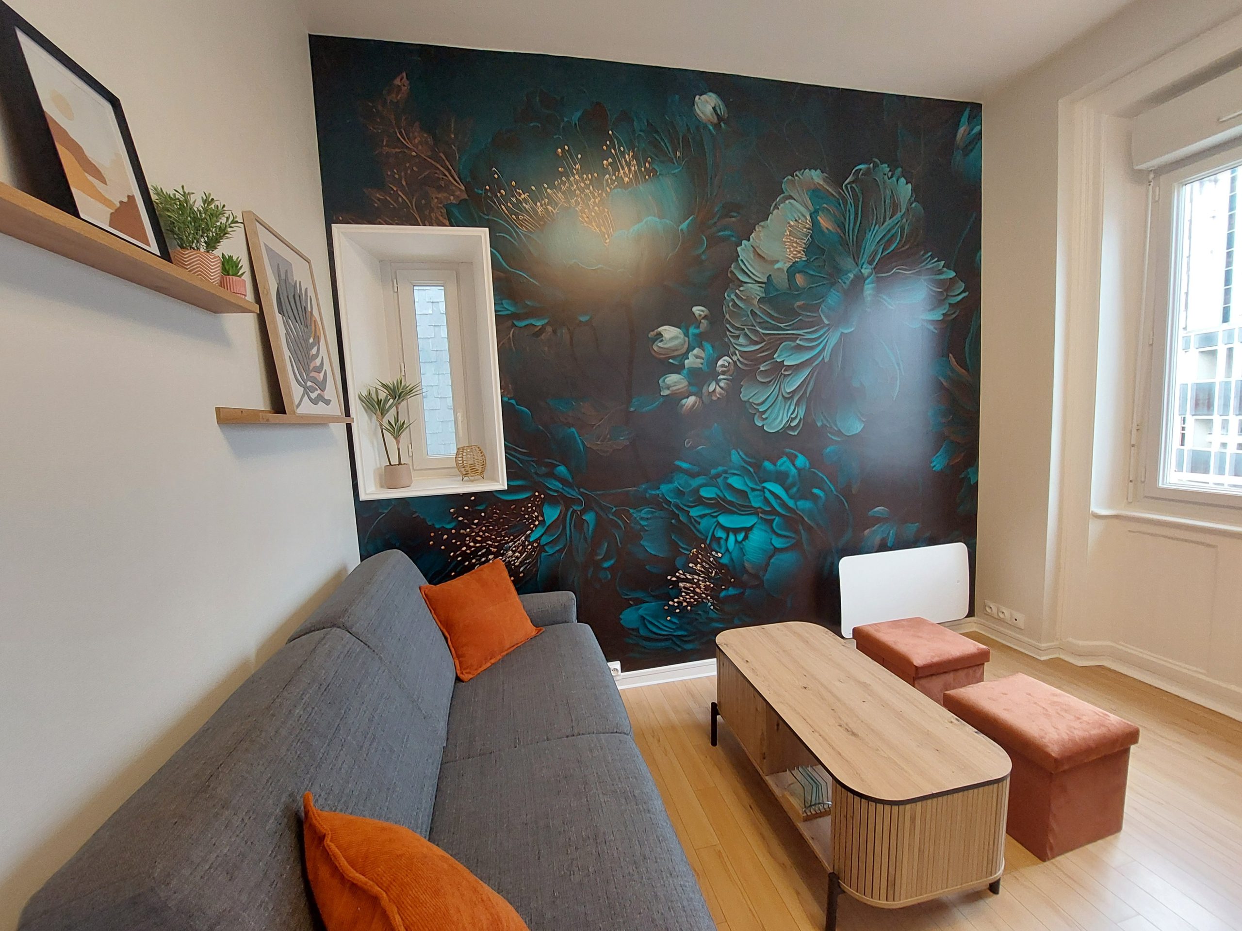 Situé au 1er étage d’une petite copropriété, BZH Groupe Immobilier vous propose de visiter ce très bel appartement de type TII, qui a fait l’objet d’une rénovation complète, entièrement meublé, aménagé et équipé.