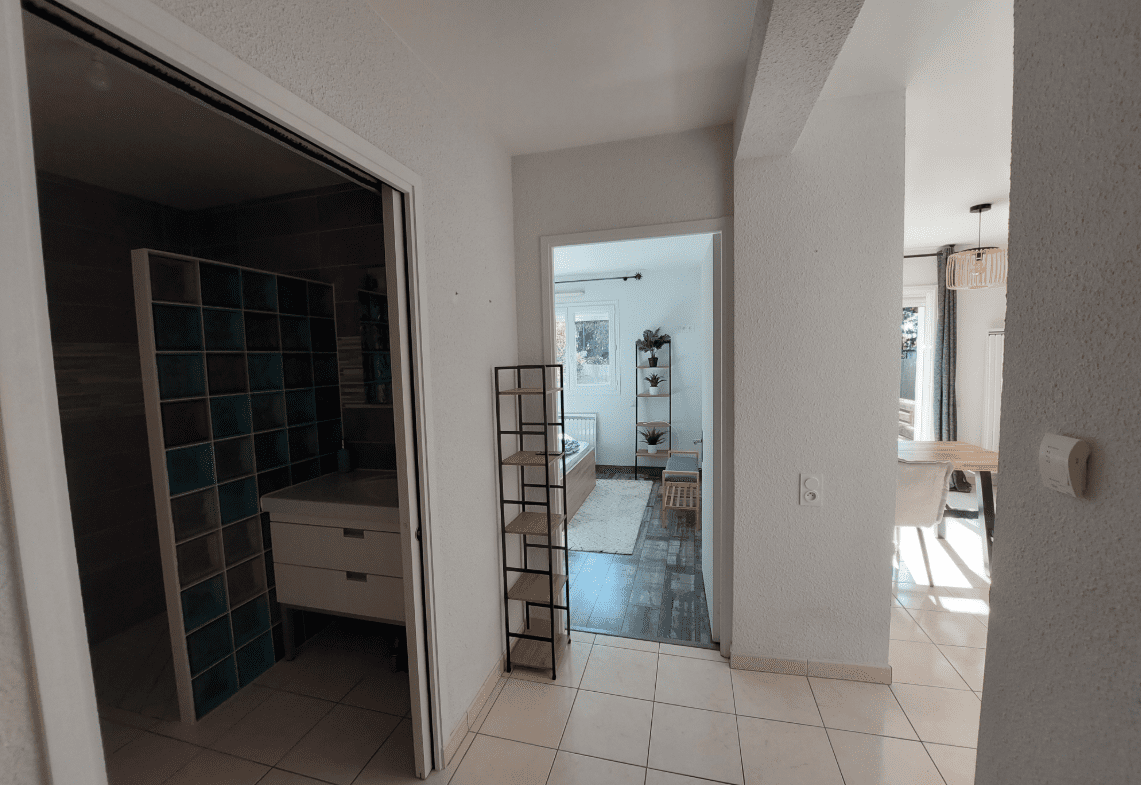 D’une surface de 51.59 m², ce bien se compose d’une entrée desservant une salle d’eau, un WC séparé, une chambre, une pièce de vie avec une cuisine ouverte aménagée et équipée donnant sur une terrasse et jardin.
