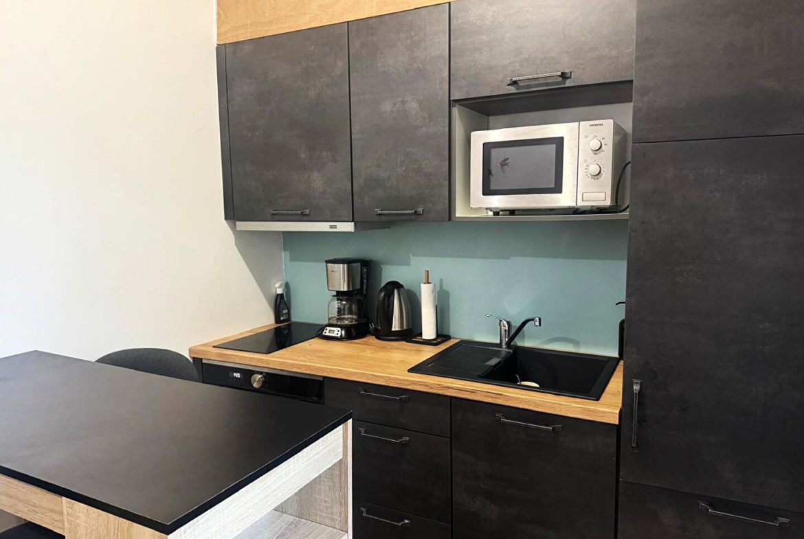 Ce bel appartement de type T1 se compose d’un coin cuisine aménagé et entièrement équipé, ouvert sur un séjour lumineux et agréable, ainsi que d’un coin nuit parfaitement intégré. L’ensemble est complété par une salle d’eau privative avec douche et WC, offrant confort et fonctionnalité au quotidien.
