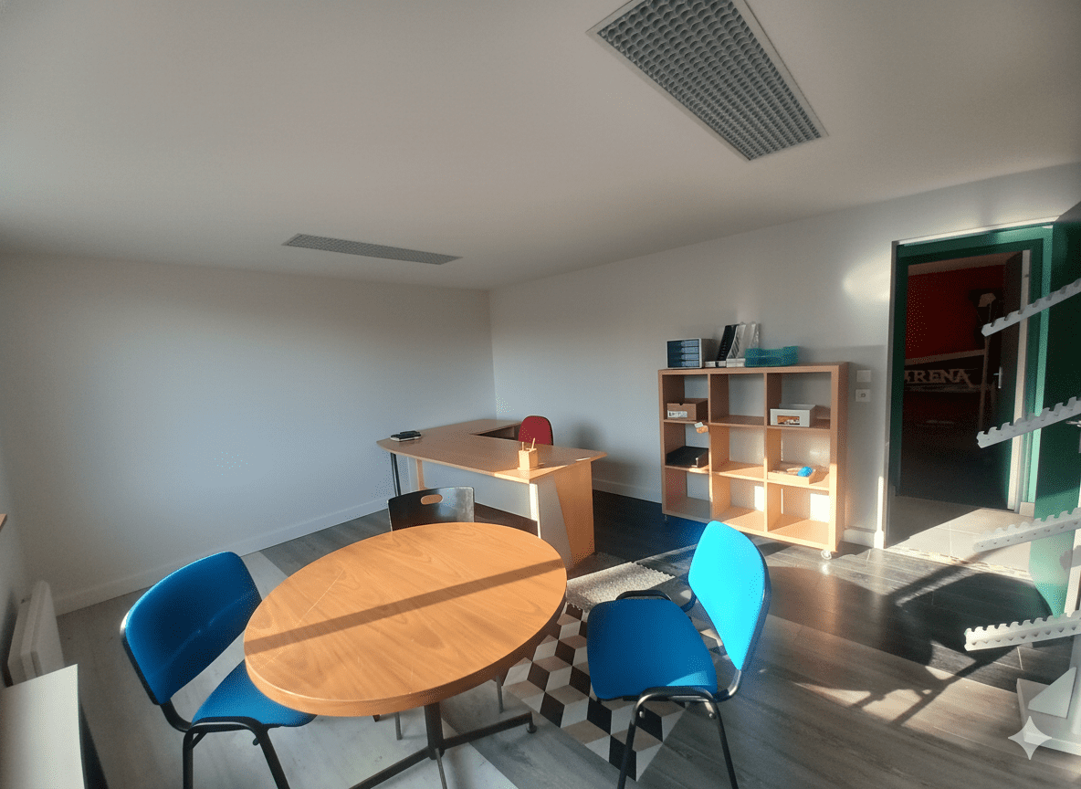 Le bâtiment, édifié en parpaings avec charpente métallique et toiture non isolée, accueille une partie bureaux fonctionnelle comprenant cinq espaces distincts, une salle de pause ainsi qu’un sanitaire. Les locaux sont raccordés à la fibre optique, assurant une connexion adaptée aux activités nécessitant des échanges numériques fluides.