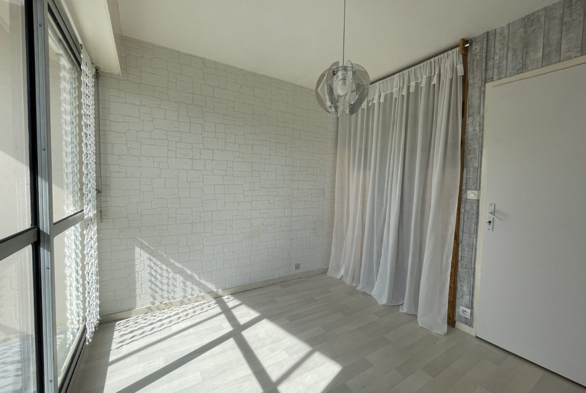 Cet appartement lumineux, exposé sud-est, bénéficie d’une vue dégagée agréable. Il se compose d’une entrée desservant un salon séjour spacieux, un coin dinatoire, une cuisine indépendante ainsi qu’un cellier fonctionnel.