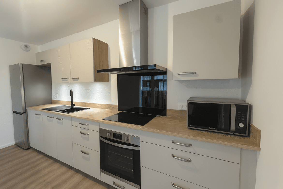 Ce T3 en rez-de-jardin allie modernité, fonctionnalité et sérénité, dans un environnement calme et verdoyant, tout en restant à proximité immédiate de toutes les commodités.
