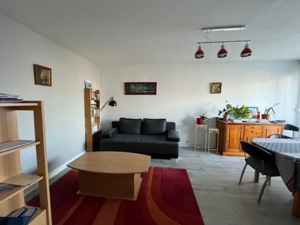 Le salon séjour lumineux avec ses trois fenêtres et sa cuisine ouverte entièrement équipée vous apportera une touche de charme et une atmosphère chaleureuse.