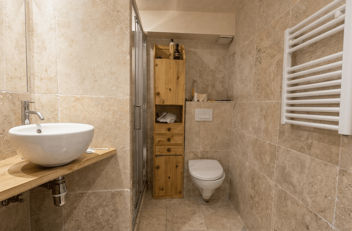 L’appartement se distingue immédiatement par son cachet où les pierres apparentes rencontrent des poutres de bois, créant une atmosphère chaleureuse et particulièrement recherchée. L’espace de vie principal a été conçu pour optimiser chaque mètre carré et intégrant une cuisine . Une salle d’eau fonctionnelle avec W.C. complète ce bien.
