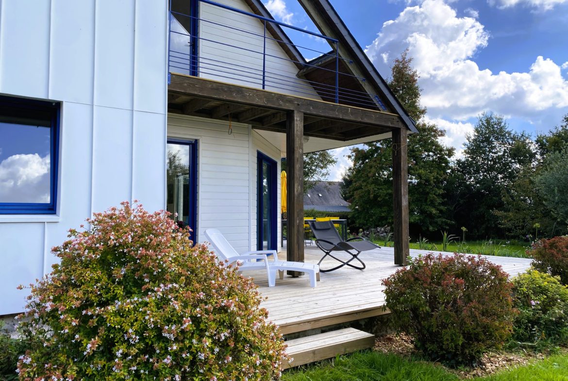 Découvrez cette maison d’architecte en ossature bois de 145 m², nichée au calme entre Tréffléan et Vannes, au fond d’une allée privée, dans un environnement verdoyant et paisible.