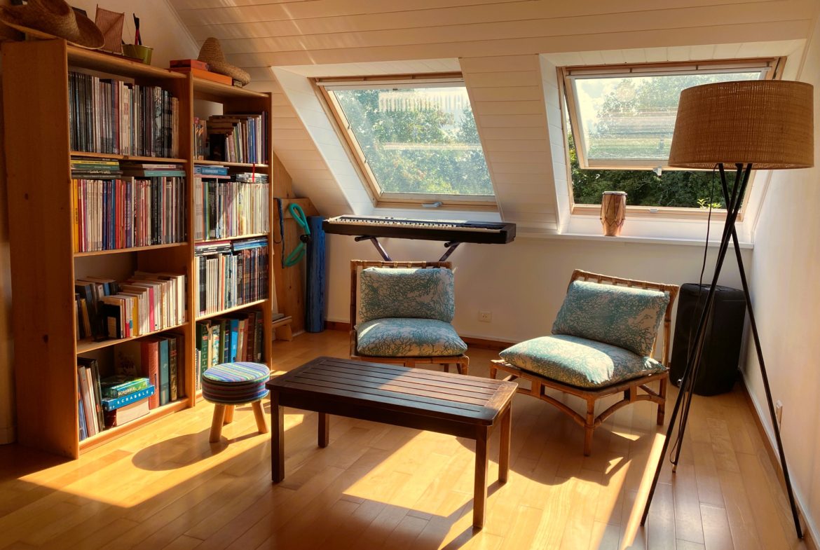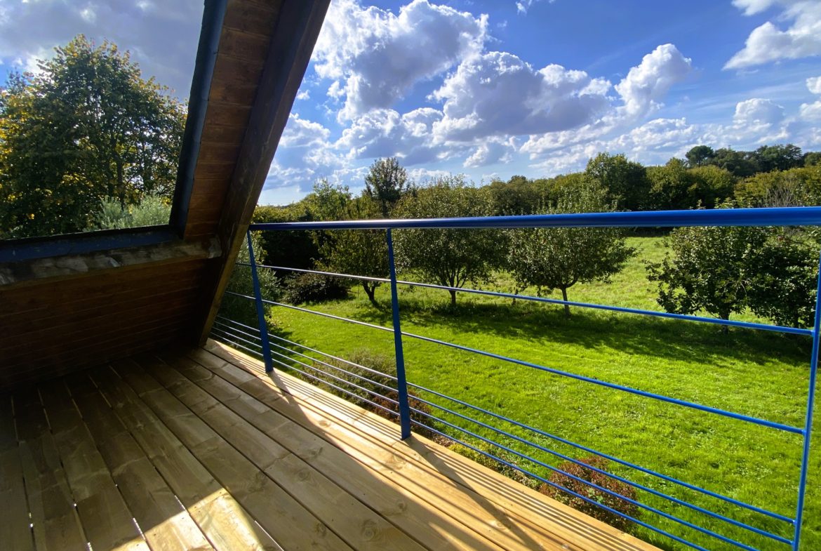 À l’étage : une belle mezzanine desservant trois chambres, dont deux avec accès balcon, et une salle de bain.