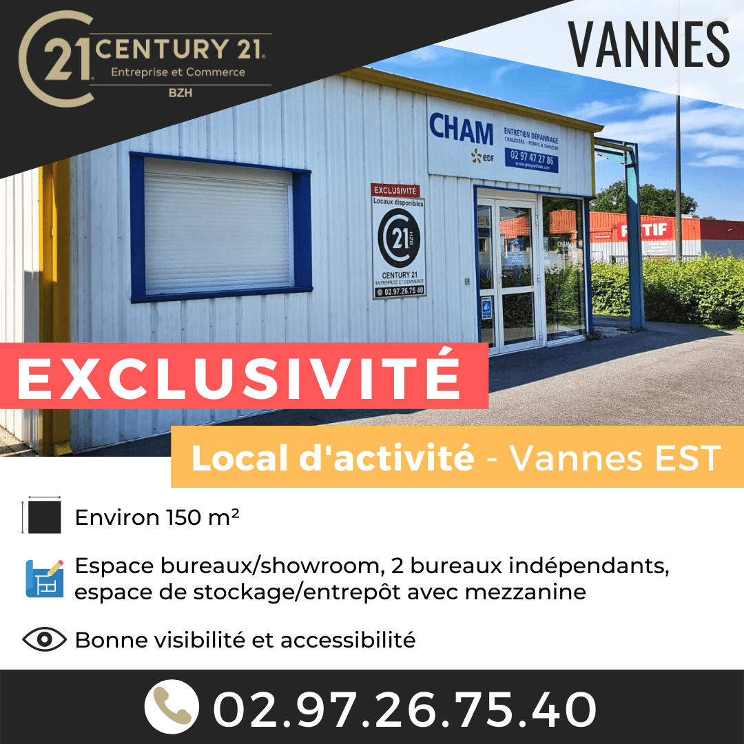 Local d'activité disponible, situé à Vannes EST, d'une surface d'environ 150 m² comprenant : Un espace de bureaux / showroom Deux bureaux indépendantsUn espace de stockage / entrepôt avec mezzanineParking privatif Bénéficiez également d'une bonne visibilité et accessibilité. Cet emplacement est peut-être le vôtre ! Pour visualiser l'annonce de ce bien, cliquez ici. Pour plus...